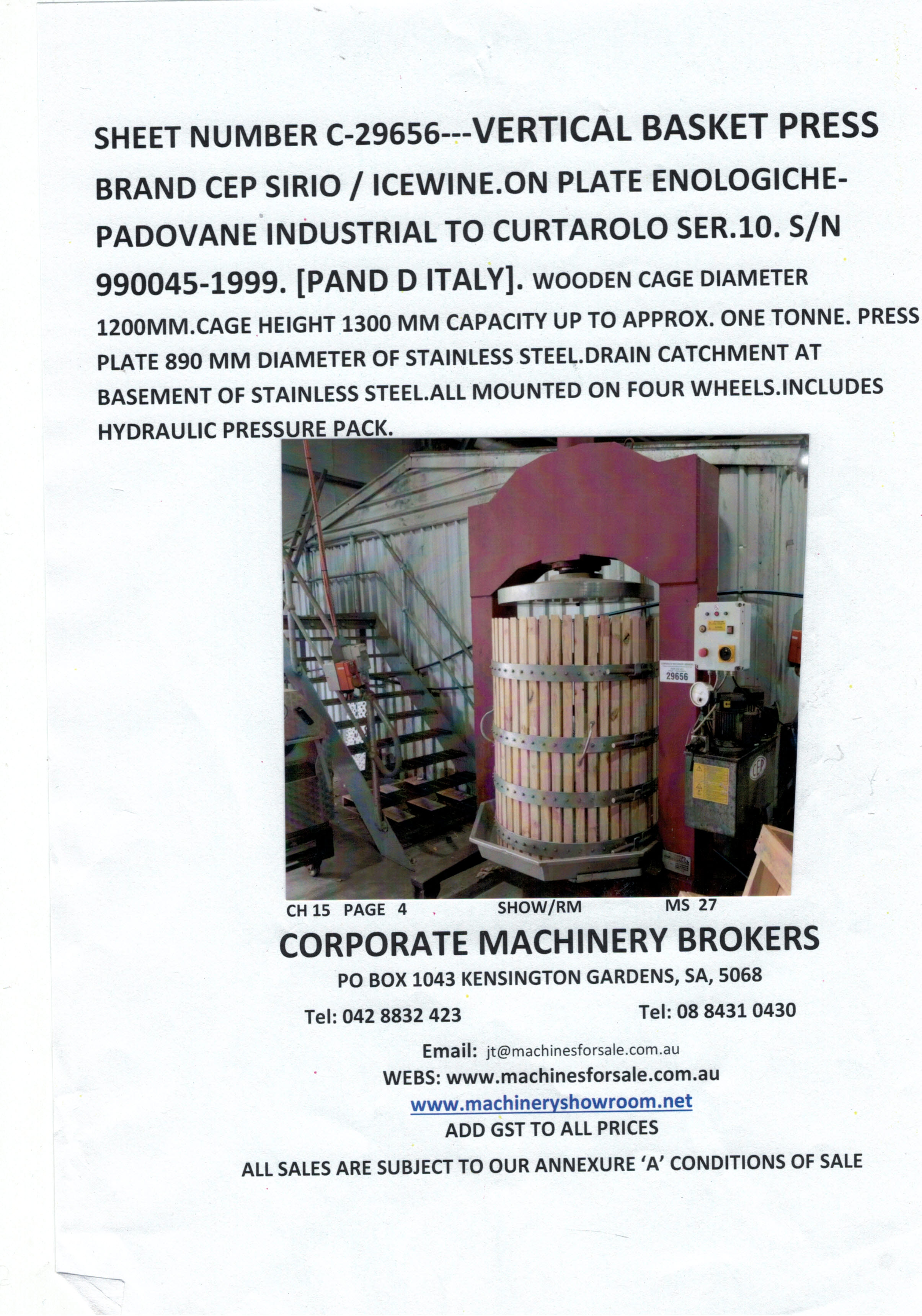 EMAIL jt@machinesforsale.com.au WEB https://www.machineryshowroom.net